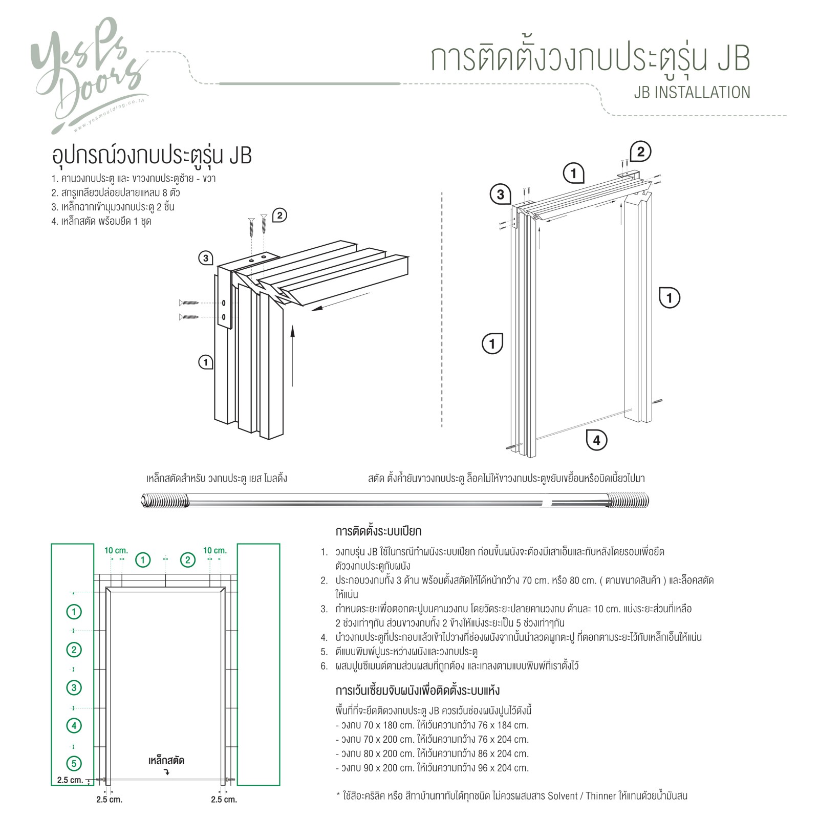 *วงกบ JB เป็นรุ่นแนะนำทาสีทับ (เนื่องจากวงกบไม่มีสี) ใช้สีอะคริลิค หรือสีทาบ้าน หรือสีน้ำมันพ่นอุตสาหกรรมกึ่งแห้งไว พ่น ทาทับ หลีกเลี่ยงสาร Solvent/Thinner ให้แทนด้วยน้ำมันสน